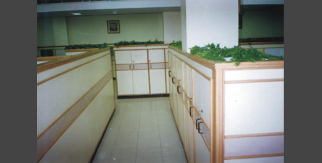 • Optimum utilization of available space with the challenge to accomodate various allied sections under one roof and a very specific brief from the client to maximize storage.